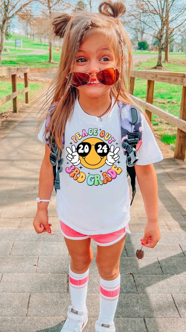 Peace out 3rd grade yellow happy face 31847 DTF transfer