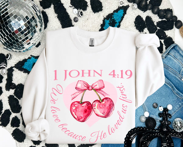 1 John 4:19 we love because he loved us first 93635 DTF transfer