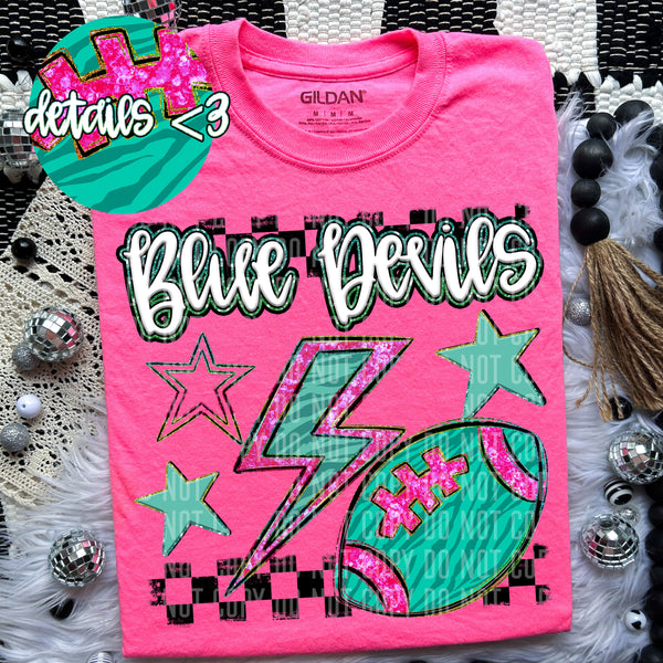 Blue Devils Pink Flowers And Stars 104901 DTF transfer