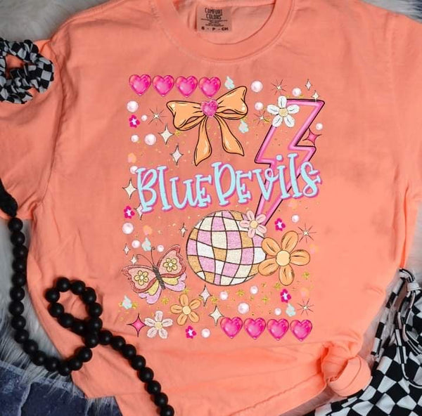 Blue Devils Pink Bow School Mascot 57878 DTF transfer
