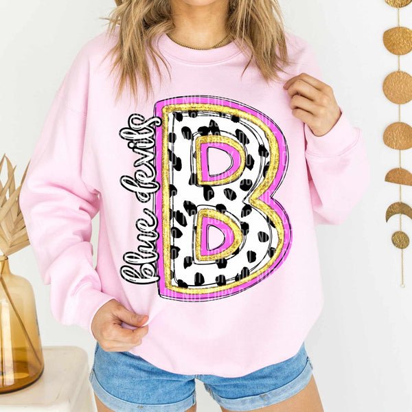 Blue devils pink out leopard font caplinger DTF TRANSERS