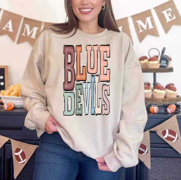 Blue Devils Polka Font Mascot Caplinger 56205 DTF transfer