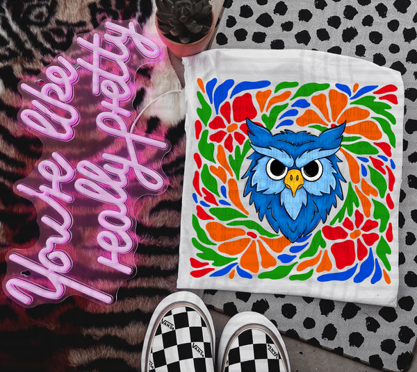 Blue Owl Retro Floral (Caplinger) 101128 DTF transfer
