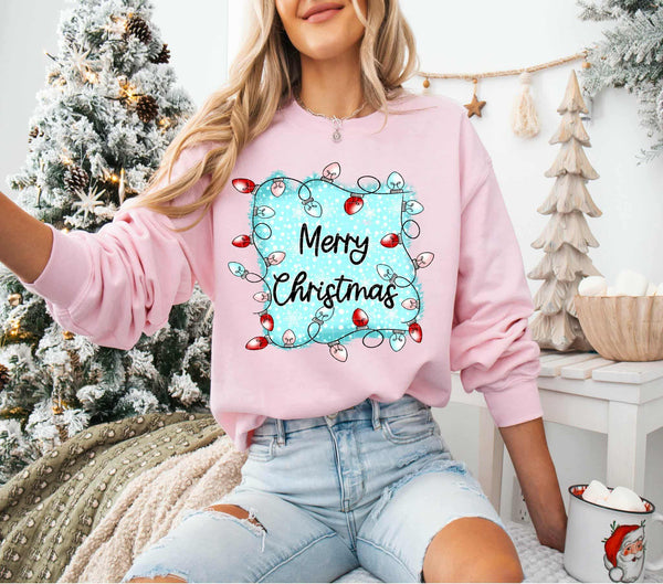 Blue Merry Christmas Frame with lights (Linda) DTF transfer