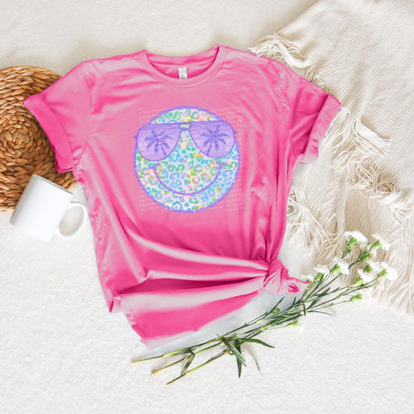 Blue leopard PURPLE SHADES happy face 29069 DTF transfer
