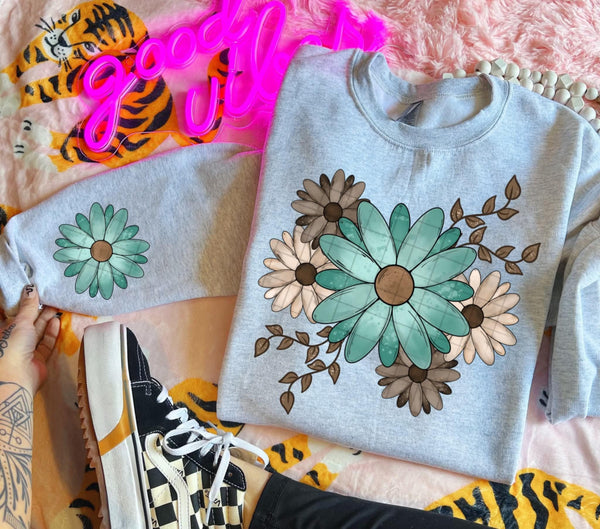 Blue sunflower cluster FRONT (Linda) 107900 DTF transfer