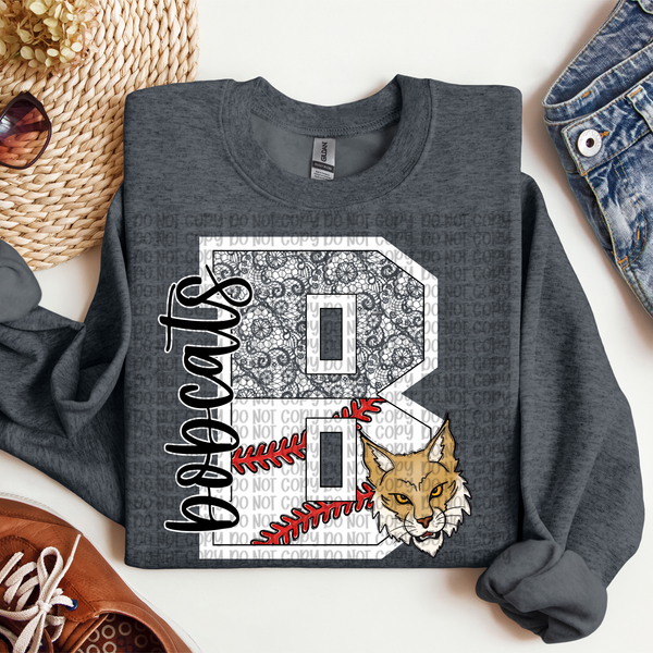 Bobcats Baseball and Lace Letter (VP) 102740 DTF transfer
