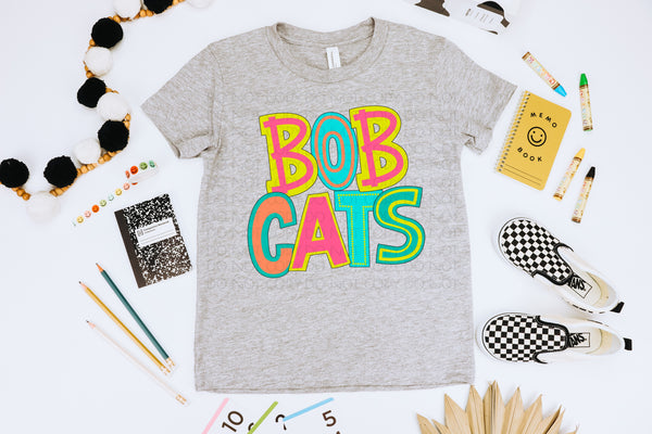 Bobcats colorful bubble font (S&G) 64475 DTF transfer