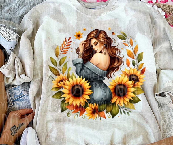 Brunette woman with sunflowers (vintage) 53755 DTF transfer