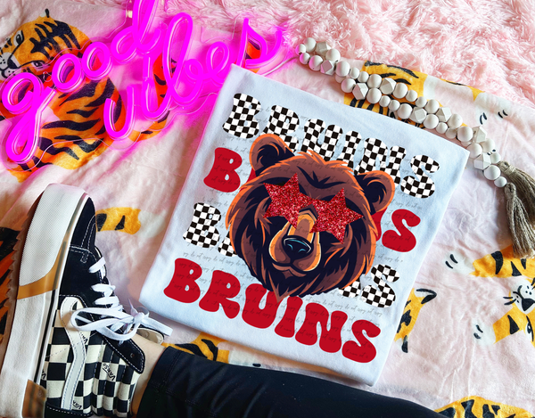BRUINS stacked pink checkered (Caplinger) DTF transfer