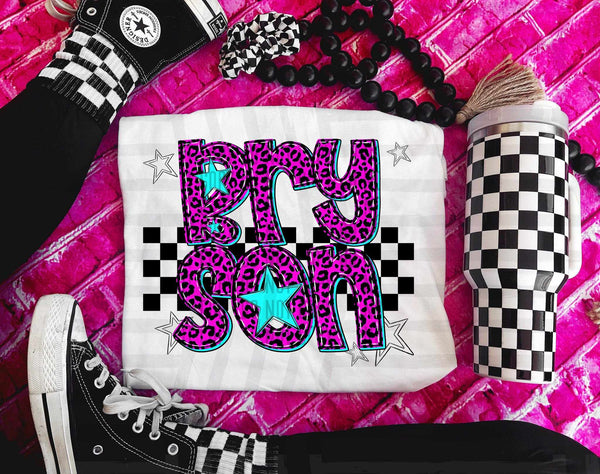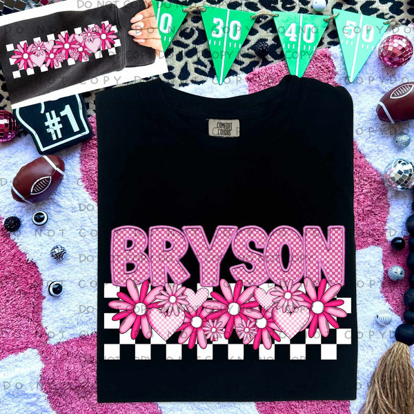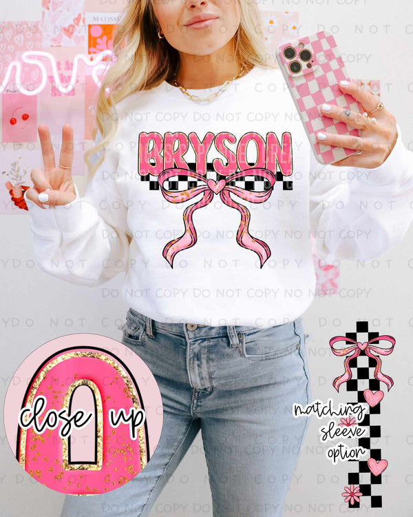 BRYSON stacked pink checkered (Caplinger) DTF transfer