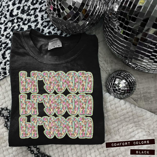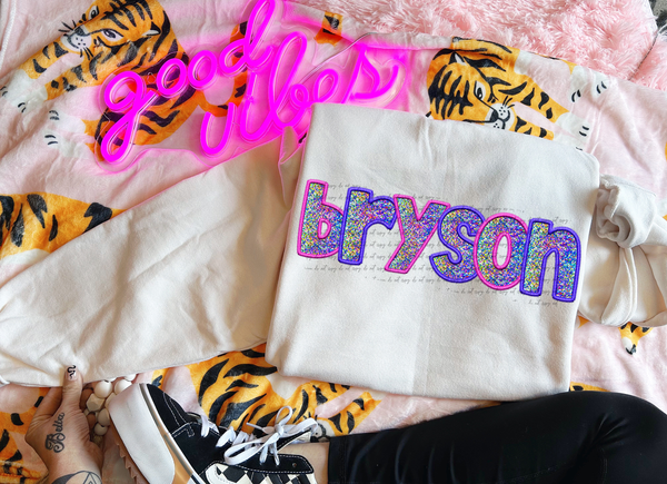 Bryson Faux Embroidery Pink Blue 74961 DTF Transfer