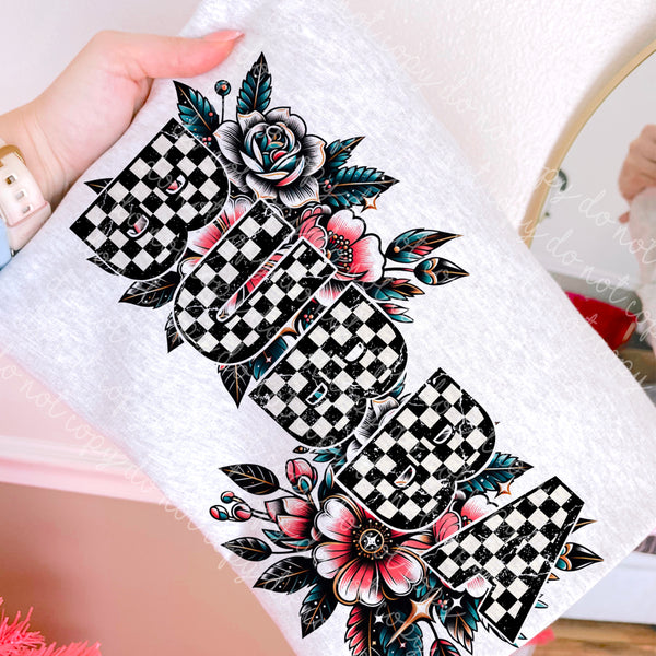 Bubba checkered with flowers (MMD) 101021 DTF transfer