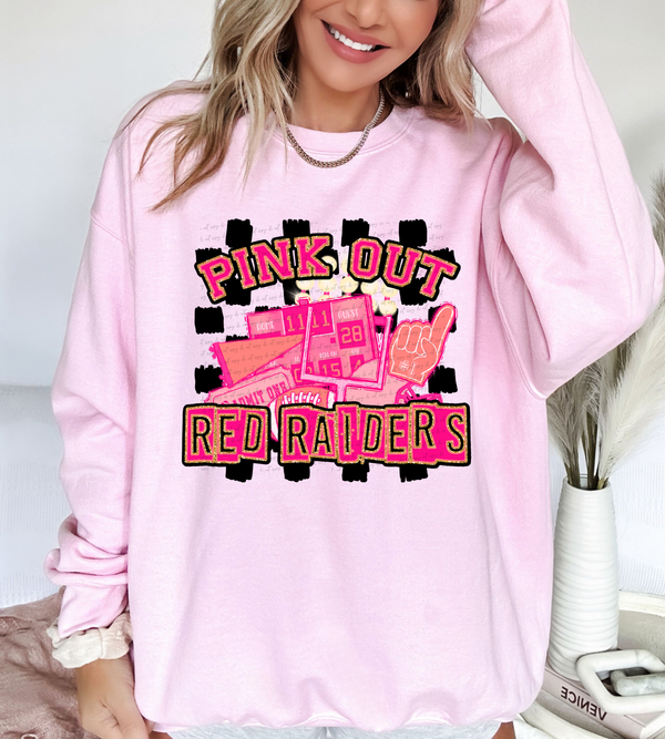 Pink Out Red Raiders Checkered Background 61575 DTF transfer