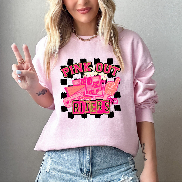 Pink Out Riders Checkered Background 61582 DTF transfer