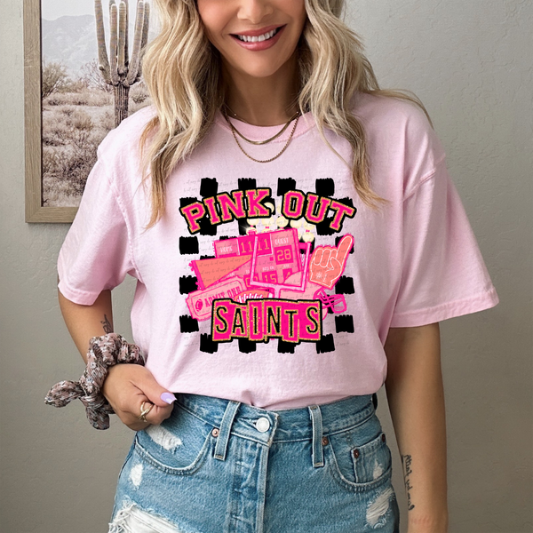 Pink Out Saints Checkered Background 61598 DTF transfer