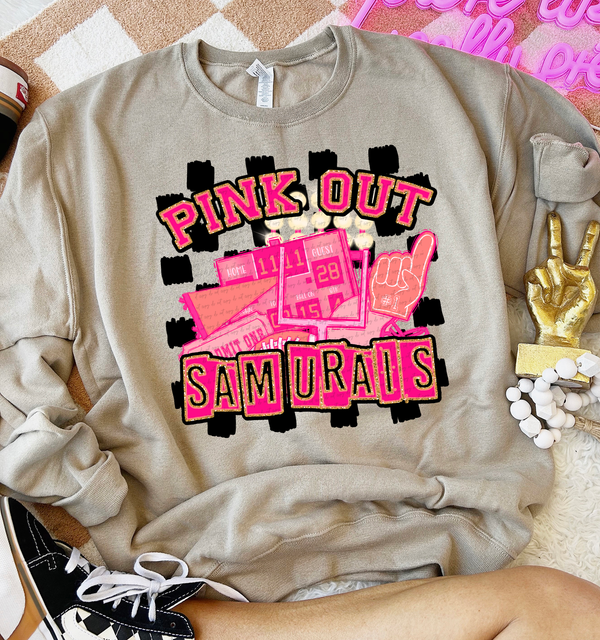 Pink Out Samurais Checkered Background 61601 DTF transfer