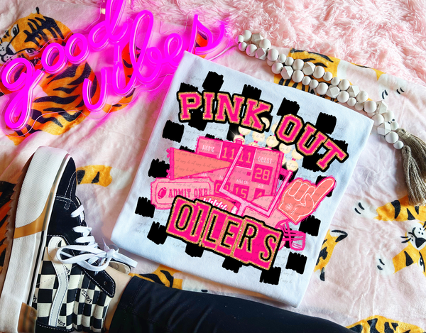 Pink Out Oilers Checkered Background 61518 DTF transfer