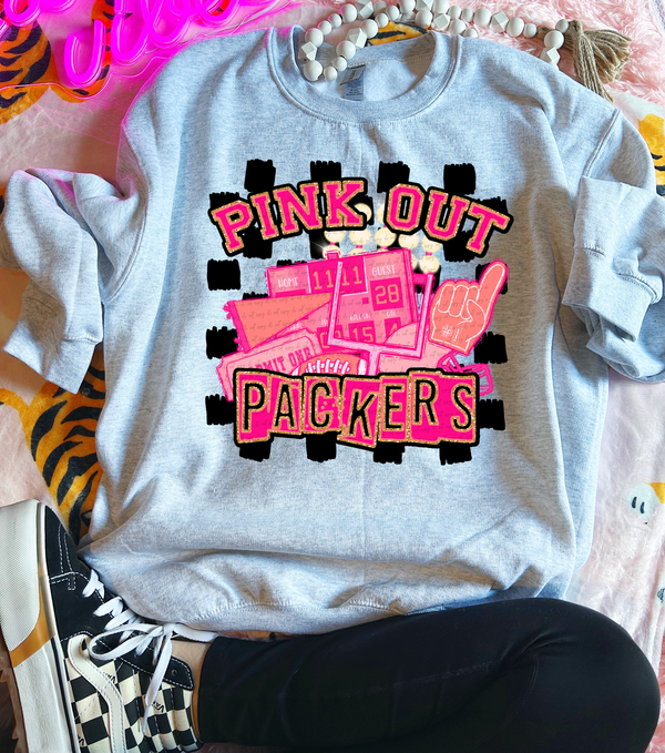 Pink Out Packers Checkered Background 61524 DTF transfer