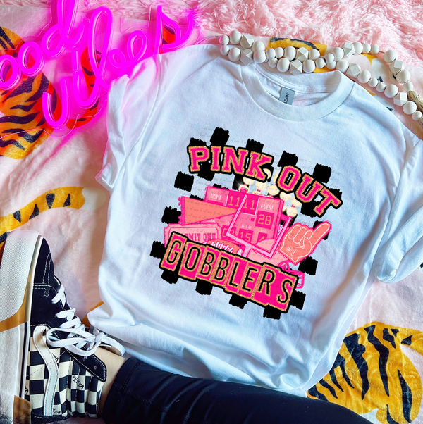 Pink Out Gobblers Checkered Background 61402 DTF transfer