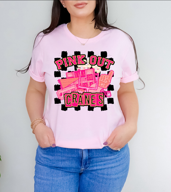 Pink Out Cranes Checkered Background 61336 DTF transfer