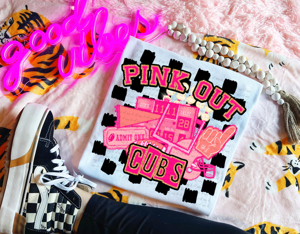 Pink Out Cubs Checkered Background 61338 DTF transfer