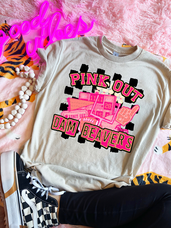 Pink Out Dam Beavers Checkered Background 61341 DTF transfer