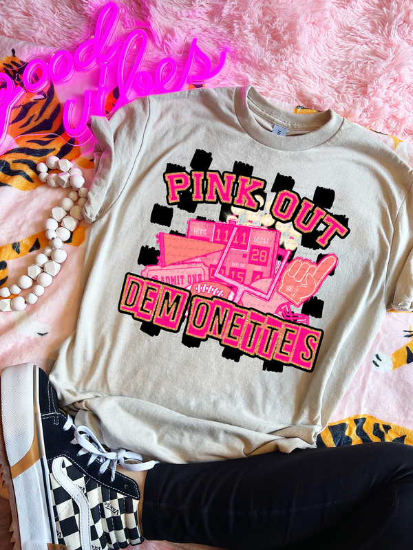 Pink Out Demons Checkered Background 61348 DTF transfer