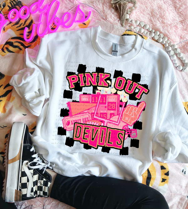 Pink Out Devils Checkered Background 61349 DTF transfer