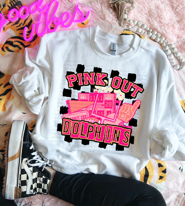 Pink Out Dolphins Checkered Background 61357 DTF transfer