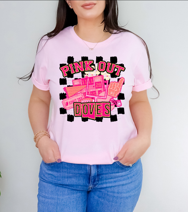 Pink Out Doves Checkered Background 61359 DTF transfer