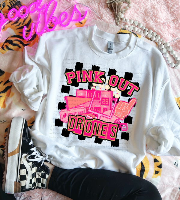 Pink Out Drones Checkered Background 61361 DTF transfer