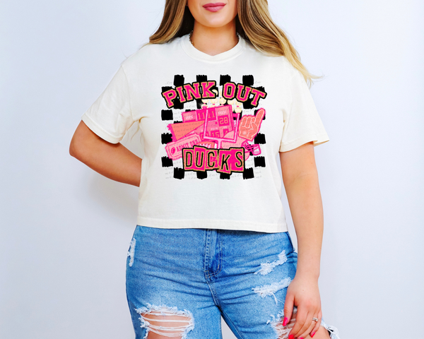 Pink Out Ducks Checkered Background 61362 DTF transfer
