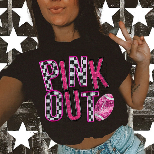 Pink out glitter and checkered embroidery (CCDD) 43659 DTF TRANSFER