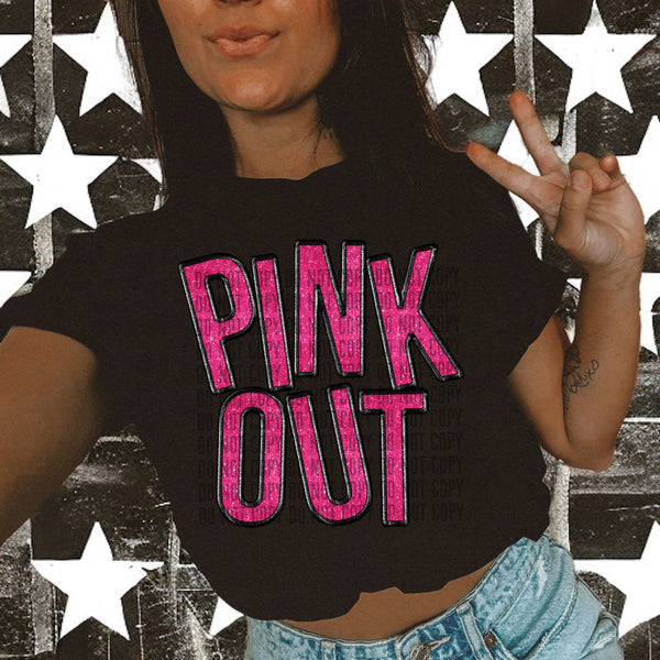Pink out glitter embroidery (CCDD) 43657 DTF TRANSFER