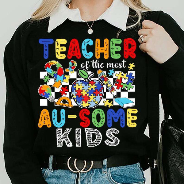 Teacher of au-some kids white checkered 27880 DTF transfer