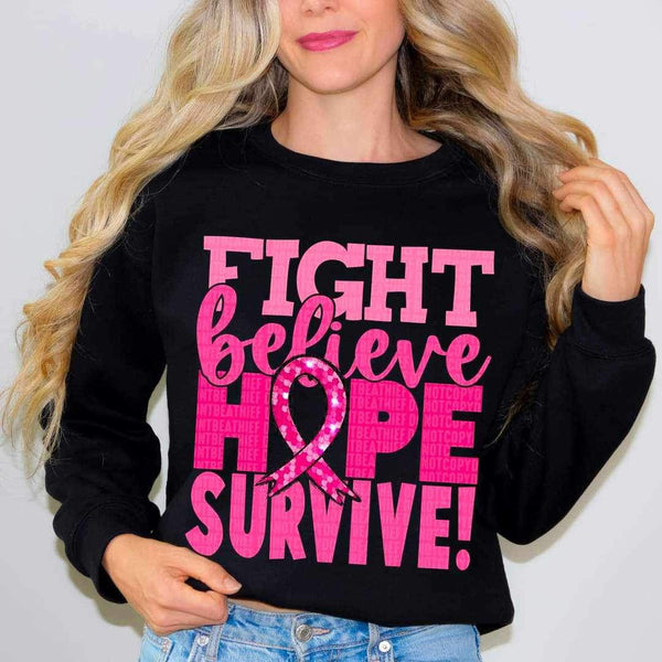 Fight believe hope survive (pink with sequin ribbon) 9810 DTF TRANSFERS