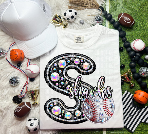 Sharks Leather Rhinestones Baseball 51845 DTF transfer