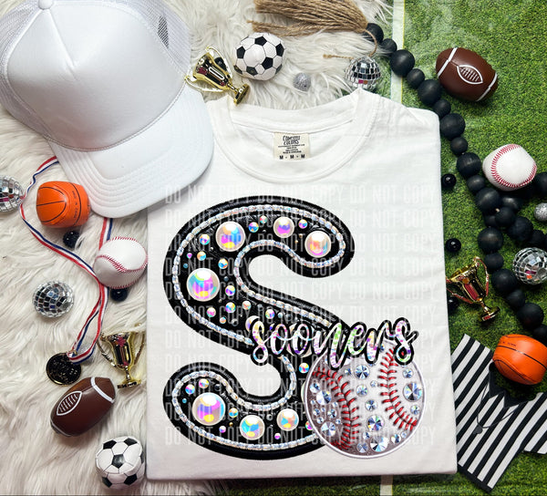 Sooners Leather Rhinestones Baseball 51846 DTF transfer