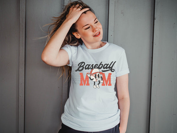 Baseball mom WHITE ball with cap 112777 DTF TRANSFER