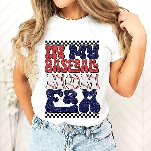 In my baseball mom era with checkered print 25984 DTF transfer