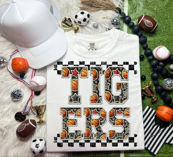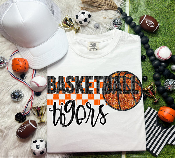 Basketball Tigers Checkered Background Faux Glitter 66918 DTF transfer