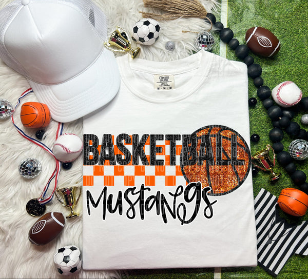 Basketball Mustangs Checkered Background Faux Glitter 66895 DTF transfer