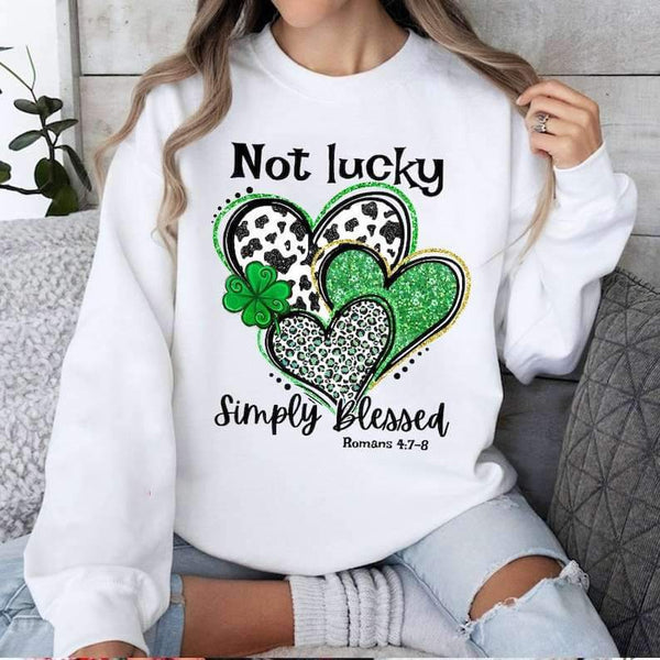 Not lucky simply blessed hearts and clover 23846 DTF transfer