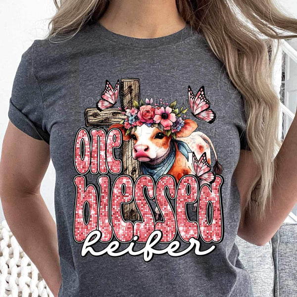 One blessed heifer cow and cross 17771 DTF TRANSFER