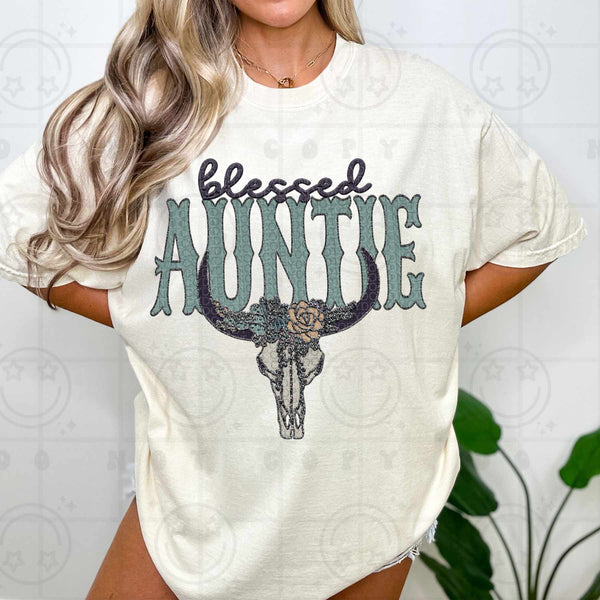 Blessed auntie bull skull (HW) 84469 DTF transfer