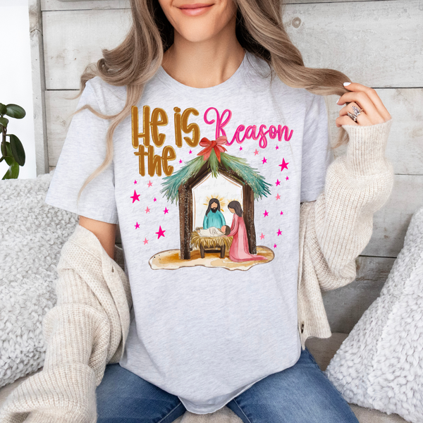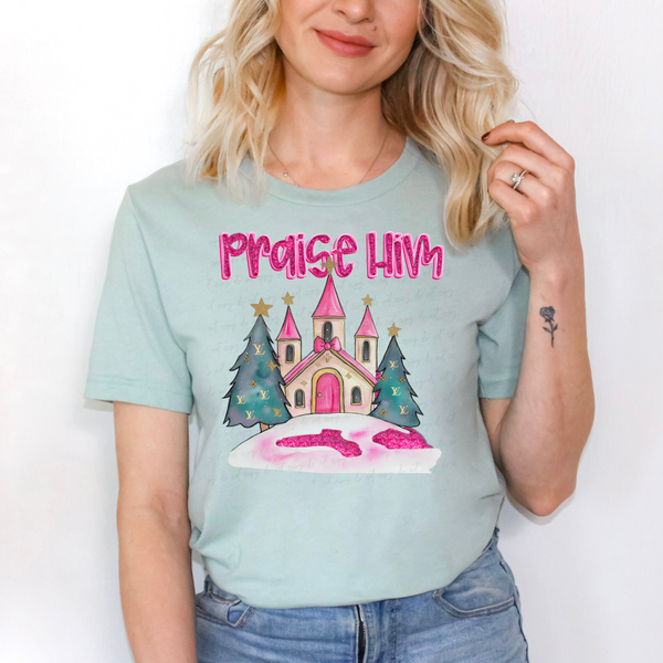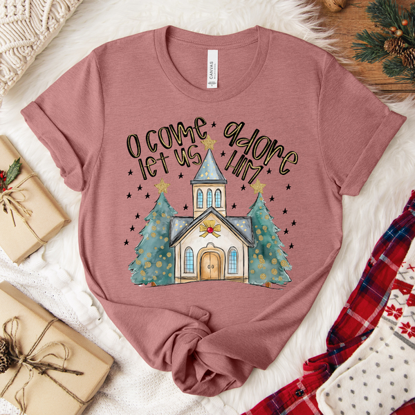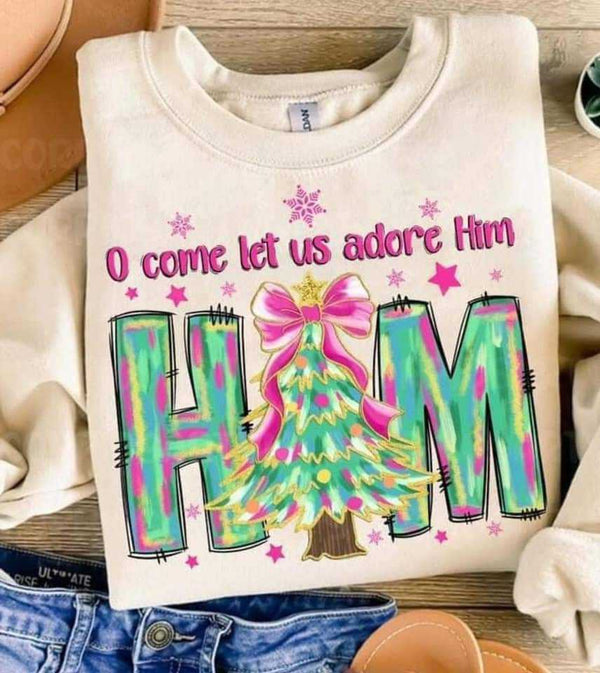 O come let us adore him pink and green with tree 70630 DTF transfer