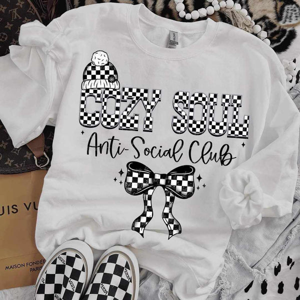 Cozy soul anti-social club (checkered behind bow) (VIRGO) 70604 DTF transfer