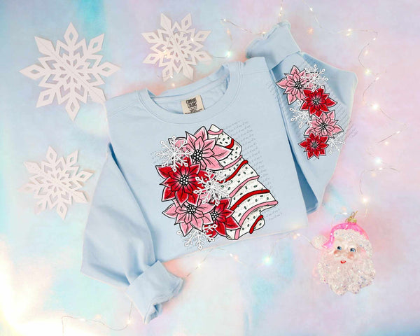 Christmas cake with poinsettias FRONT ONLY 62678 DTF transfer
