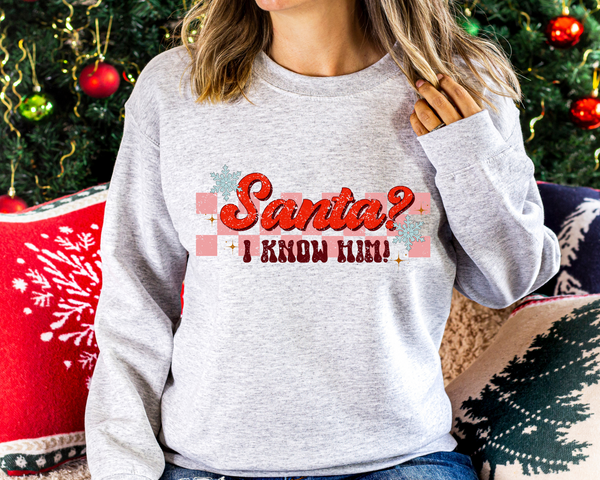 Santa I Know Him Blue Snowflakes (Red Font) 112451 DTF TRANSFER